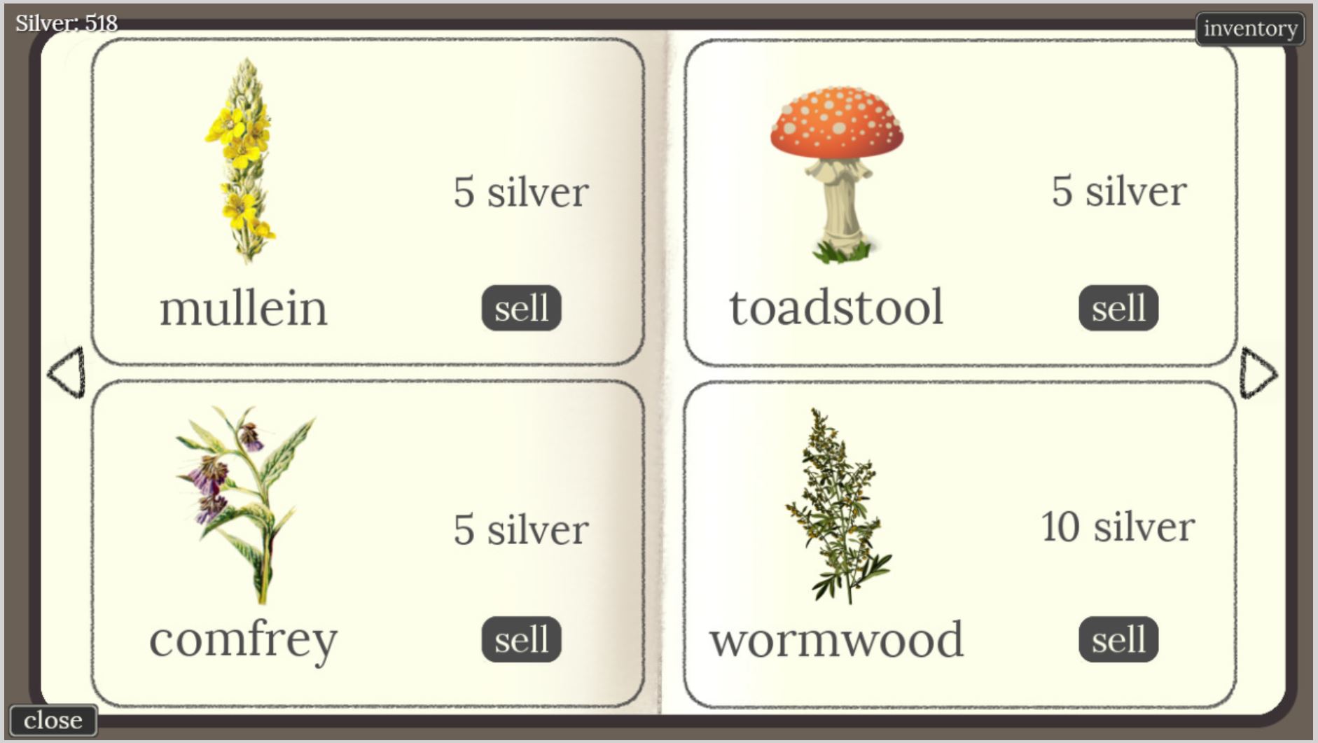 -Sell potions for more silver (potions coming soon)
